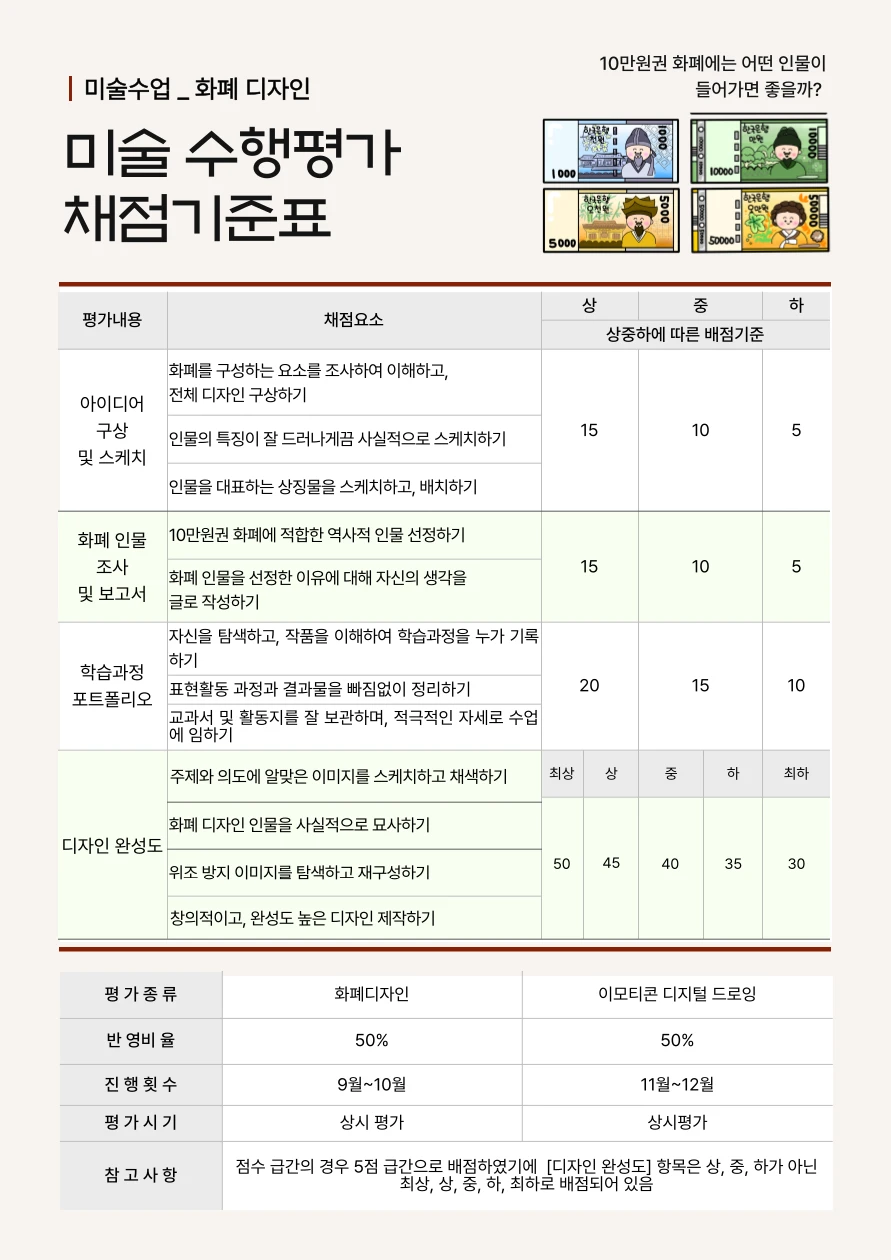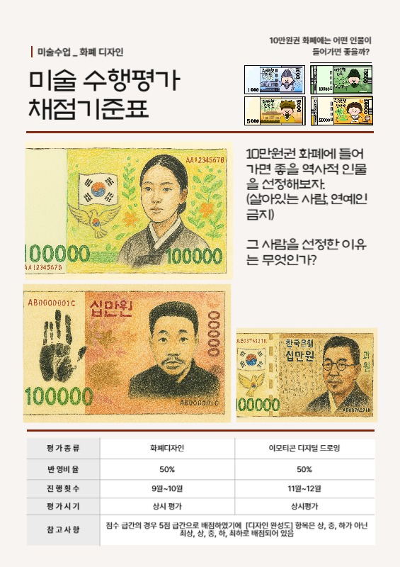 [미술수업] 화폐 디자인 -10만원권 화폐 디자인 평가기준